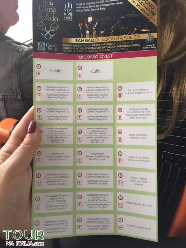 O trekking foi na cidade de Farra di Soligo, por 8 quilômetros entre os vinhedos do Prosecco Superiore, degustando as delícias enogastronômicas locais.